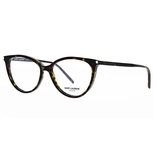 Ochelarii sunt accesoriul definitoriu in construirea stilului personal autentic si totodata, in crearea sinergiilor perfecte intre outfiturile tale si tredurile internaționale de fashion. Aceste rame de vedere de la Saint Laurent cu rama cat-eye evidentiaza trasaturile fetei intr-un mod delicat, datorita designului feminin, iconic. Stilul este îmbogățit cu detaliile iconice ale colțurilor metalice. Logo-ul Saint Laurent este gravat cu laser pe ambele temple.